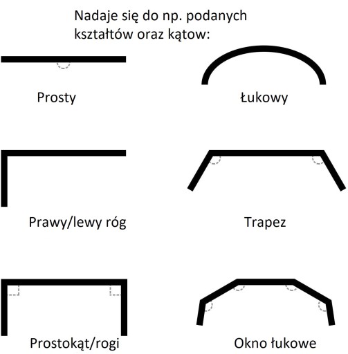 Elastyczna zakrzywiana szyna może być stosowana w oknach typu U, oknach owalnych, balkonach i wielu innych kształtach.