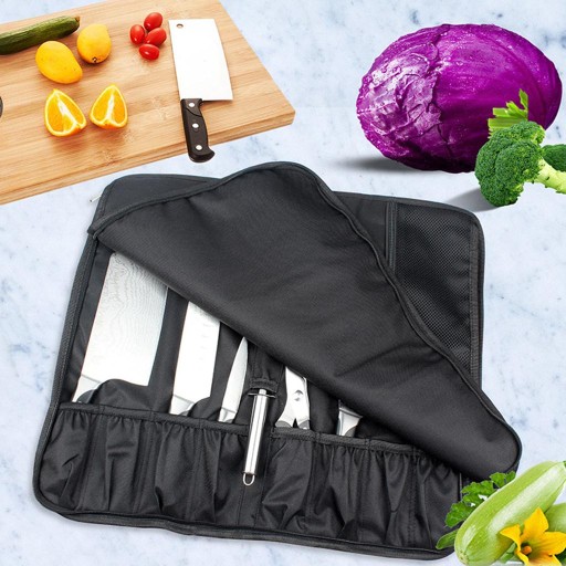 8-szczelinowy nóż szefa kuchni Noże kuchenne w rolce Futerał do przenoszenia z paskiem na ramię