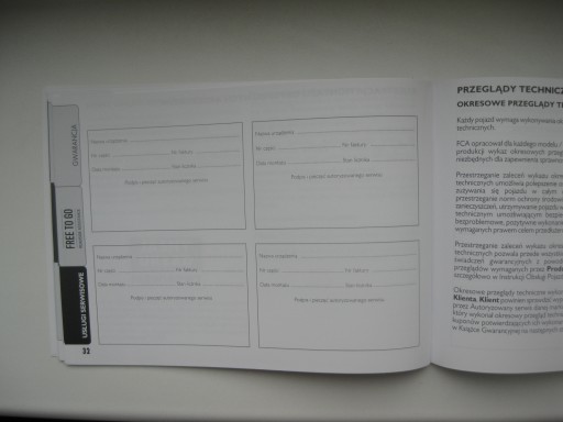 Oryginalna Polska książka serwisowa (przeglądów) do samochodów osobowych