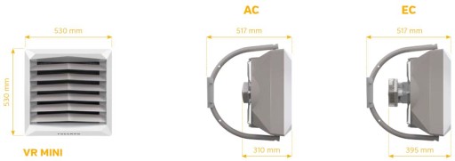 Nagrzewnica wodna VTS VOLCANO VR MINI 3-20 kW z trzybiegowym silnikiem AC + konsola montażowa + sterownik naścienny + węże elastyczne