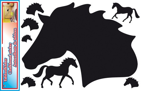 Oryginalne naklejki ścienne. Czarne naklejki w kształcie koni, o strukturze podobnej do tablicy - Można po nich pisać kredą i zmywać ją. Idealna ozdoba pokoju, drzwi, stajni, czy siodlarni.