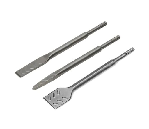 3 szt. Wysokiej jakości dłuta spiczaste, płaskie i łopatkowe nowej generacji z uchwytem do SDS-plus w atrakcyjnym opakowaniu zbiorczym.