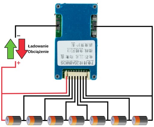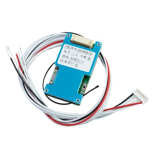 Obsługa 7 ogniw o łącznym napięciu znamionowym 25,2 V – 29,4 V (3,6V – 4,2V na ogniwo) z zabezpieczeniami, balanserem i zabezpieczeniem temperaturowym.