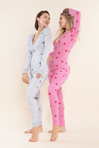 Onesie Kombinezon z klapką szare gwiazdki piżama L