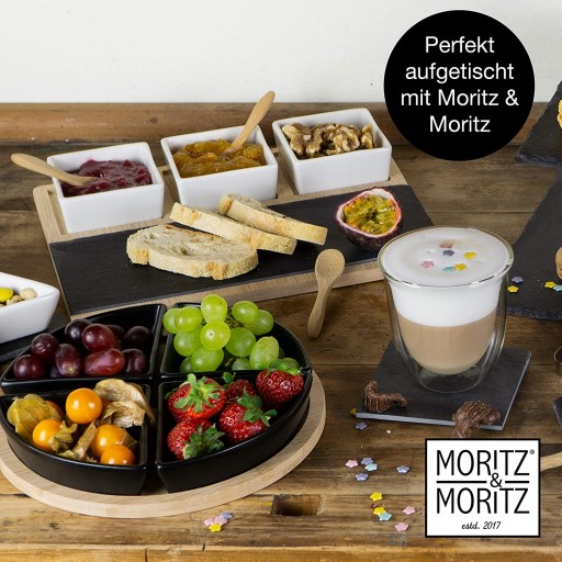 Wysoka jakość – zestaw misek do serwowania najlepszej jakości firmy Moritz & Moritz, mieszanka materiałów z łupka, ceramiki i bambusa
