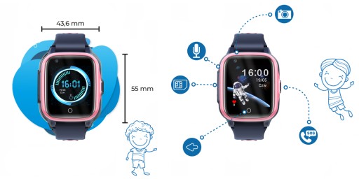 | 4G | Wideorozmowy | Aplikacje | Gry | SIM | GPS | GSM | Wi-Fi | Zdjęcia | SOS | Krokomierz | Nasłuch | Plan lekcji | Dokładna lokalizacja |