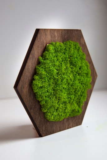 - Materiał : Sklejka Olchowa woskowana naturalnymi woskami, mech chrobotek cięty w kolorze spring green