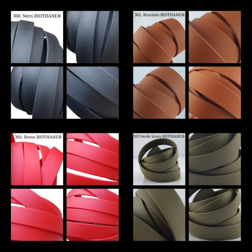 - Wykonane ręcznie, z oryginalnej taśmy BIOTHANE® o grubości ok. 2 mm i szerokości ok. 2 cm.