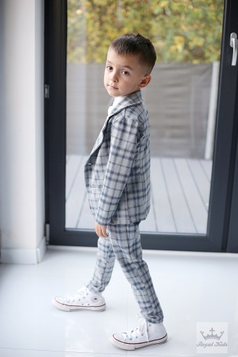 Przepiękny garnitur chłopięcy w ponadczasową kratę od znanego i bardzo dobrego polskiego producenta Royal Kids.