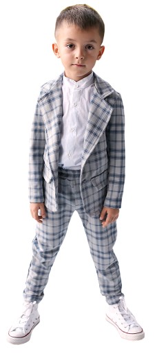Przepiękny garnitur chłopięcy w ponadczasową kratę od znanego i bardzo dobrego polskiego producenta Royal Kids.