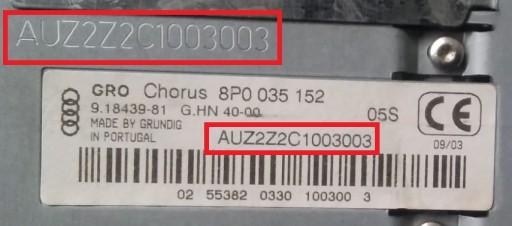 - Radio Audi na przykład: AUZ1Z2I5632487, AUZ2Z3E4587238, AUZBZ7H4752184