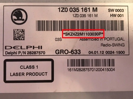 - Radio Skoda na przykład: SKZ1Z2H7986926, SKZ1Z7G5874125, SKZ6Z7H5785214