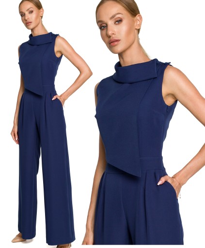 KOMBINEZON BEZ RĘKAWÓW Z PODWÓJNYM PRZODEM MOE702 w kolorze granatowym