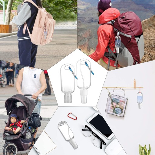 Łatwy do przenoszenia: przezroczyste butelki mogą pokazywać kolor zawartości w nich. Użyj karabińczyka z klamrą, aby łatwo przyczepić butelki do kluczy, torebki, torby itp. Możesz również umieścić go w torbie lub kieszeni.
