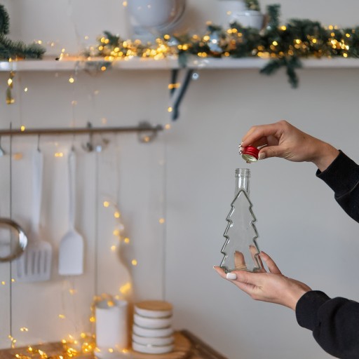 ☃️Butelka w kształcie choinki stanowi również wyjątkowy element dekoracji. Wypełnić możesz ją dowolną zawartością. Trunkiem, sokiem, lampkami led, brokatem czy kolorowymi koralikami – z pewnością będzie prezentować się wyjątkowo oryginalnie!