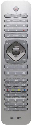 Elegancki uniwersalny pilot 3 w 1 do telewizora Philips, Blu-ray i soundbara, w skład którego wchodzą m.in. kompatybilny również z markami takimi jak LG, Samsung, Sony i Panasonic: doskonały zamiennik.