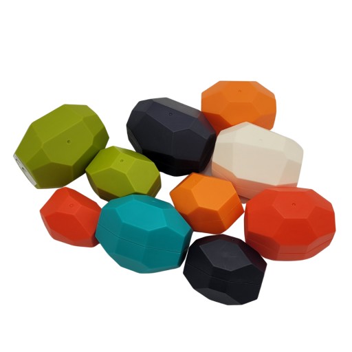 KLOCKI - KAMIENIE wspaniale wspomagają rozwój najmłodszych poprzez uczenie logicznego myślenia, trening zmysłu równowagi, rozpoznawanie kolorów, tekstur i kształtów. Doskonałe także do wspomagania nauki liczenia.