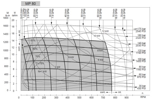 Obok znajduje się charakterystyka uniwersalna silnika wyporowego MP 80 CD.