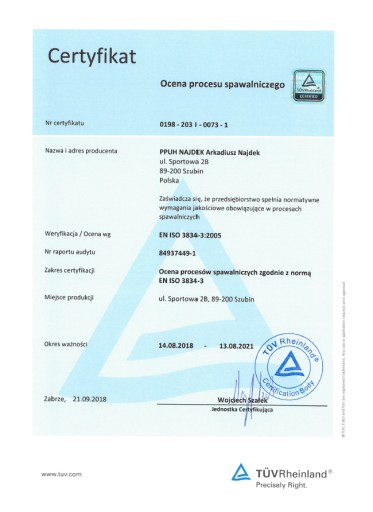 Firma NAJDEK wzorowo przeszła procedurę certyfikacji w ramach normy PN-EN 1090 (tzw. ISO1090)
