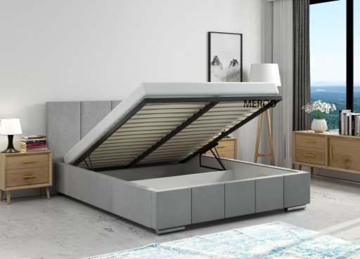 W standardzie łóżka pojemnik na pościel, stelaż drewniany otwierany za pomocą podnośników sprężynowych: