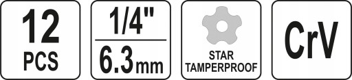 - zawiera nasadki ośmiokątne 12 i 15 mm, nasadki 2,2 i 3,2 mm do wpustów płaskich, adapter oraz bity pięciokątne od TS10 do TS40 z otworem