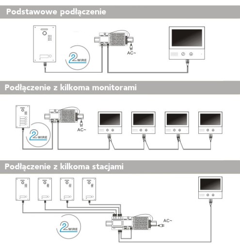 - całość systemu oparta na 2 żyłach (2-wire)