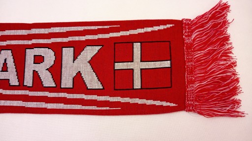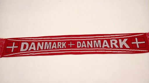 Szal DANIA dziany,dwustronny na końcach biało-czerwone frędzle.