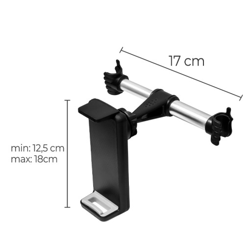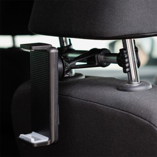 Uchwyt jest naprawdę dziecinnie prosty w montażu. Jedyne co musisz zrobić, to umiejscowić uchwyty pomiędzy wspornikami zagłówków i stanowczo „rozszerzyć je” uchwytem. Po montażu można dodatkowo w łatwy sposób obracać nim pod kątem 360 stopni, aby idealnie móc dopasować swoje urządzenie do aktualnej potrzeby. Czasem lepiej ustawić urządzenie pionowo, a czasem poziomo – sam zdecyduj.