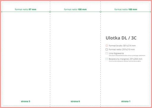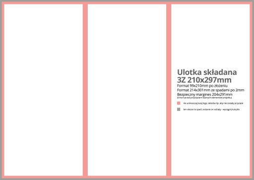 Format ulotki po złożeniu DL (99x210 mm). Ulotki mogą być składane w 3Z lub w 3C.