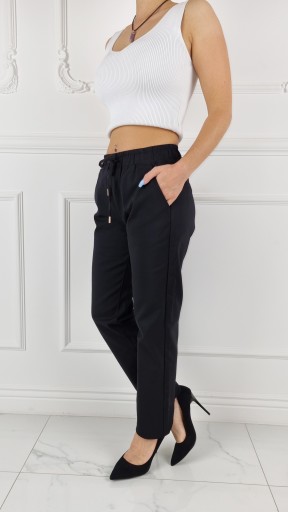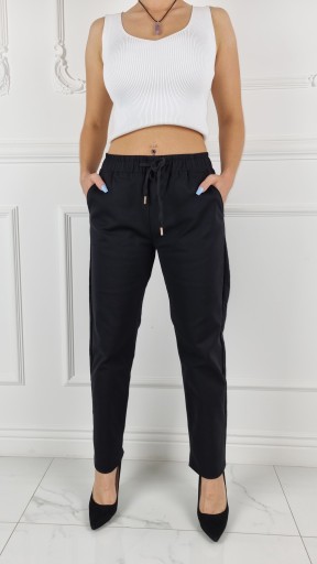 Eleganckie klasyczne spodnie cygaretki 7/8, posiadają wysoki stan. Świetne połączeniu ze szpilkami, dzięki swojej uniwersalności, pasują niemal do każdej stylizacji. Elastyczny materiał podkreśla kobiecą sylwetkę. Podkreśl swoje kobiece kształty! Spraw, by Twój codzienny Look był niepowtarzalny.