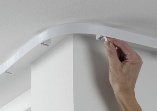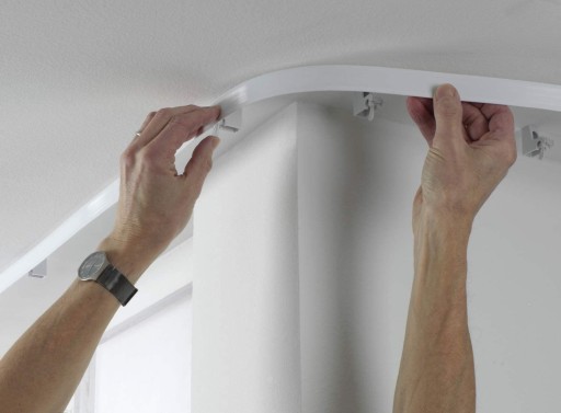 Elastyczna zakrzywiana szyna może być stosowana w oknach typu U, oknach owalnych, balkonach i wielu innych kształtach.