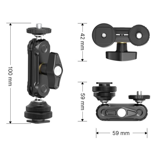 Wielofunkcyjny uchwyt przegubowy magic arm Ulanzi R098 o długości 10 cm, wykonany z lekkiego i wytrzymałego aluminium. Jest zakończony z jednej strony standardowym gwintem fotograficznym 1/4’’ oraz mocowaniem zimna stopka (cold shoe) z drugiej. To uniwersalne akcesorium foto-video, które z łatwością możemy zamontować bezpośrednio w gnieździe aparatu, a także w różnego rodzaju uchwytach, szynach montażowych czy klatkach operatorskich.