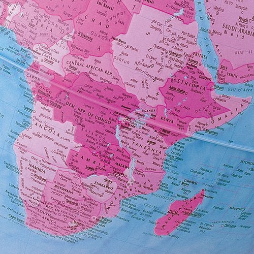Podświetlany globus polityczny zaprojektowany głównie z myślą o dziewczynkach i innych wielbicielach koloru różowego. Nie będą Ci już potrzebne różowe okulary! Każdy kraj oznaczony został innym odcieniem tej urokliwej barwy.