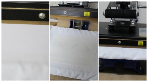 - Na prasie układamy poduszkę, następnie kładziemy na niej wydruk