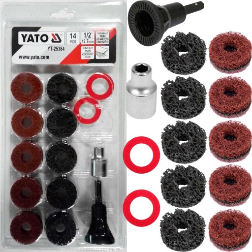 Zestaw marki YATO, przeznaczony do czyszczenia piast i szpilek.