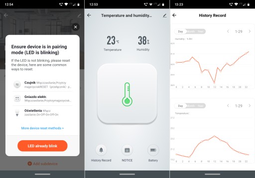 - możliwość sterowania innych urządzeń w systemie Tuya za pomocą scenariuszy z uwarunkowaniem temperatury lub wilgotności