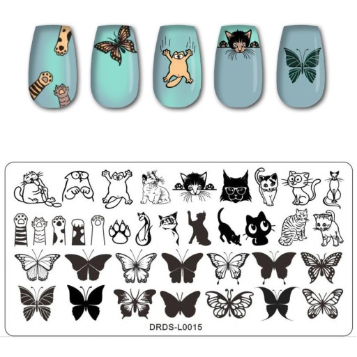 Узоры пластин для штампов для ногтей: КОШКИ, БАБОЧКИ
