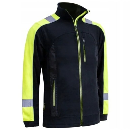 Bluza polarowa z żółtymi fluorescencyjnymi elementami oraz pasami odblaskowymi, wykonana z 100% poliestru. Gramatura polaru 300 g/m2.