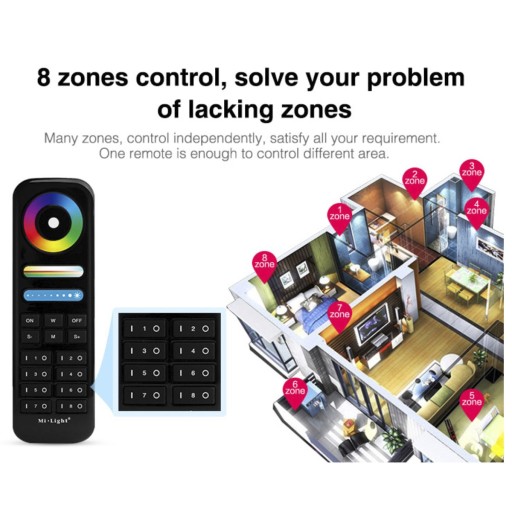 Pilot przeznaczony do obsługi odbiorników MI-LIGHT RGB, RGBW, RGBCCT (kolory i barwa biała)