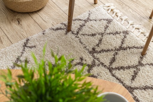 BERBER to jedyna w swoim rodzaju kolekcja dywanów typu „Shaggy”. Proste, geometryczne wzory oraz plecione na końcach frędzle nawiązują do stylu boho.Ich włosie jest wysokie, grube i sprężyste, dzięki czemu są bardzo puszyste i miękkie w dotyku. Dodatkowo kolorystyka utrzymana w odcieniach kremu, beżu, szarości i różu sprawia,że dywany BERBER nadają wnętrzom niesamowitej przytulności i ciepła. Użyte do produkcji, niezawodne włókno polipropylenowe nadaje im wysoką jakość i wytrzymałość.