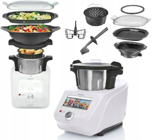 - Marka SilvercrestModel Monsieur Cuisine Connect D4Moc gotowania 1000 WMoc miksowania 800 WObroty Od ok. 120 do 5200 obr./minUstawienia temperatury Od 37°C do 130°CRegulacja temperatury Co 5 °C – dla dokładnego gotowaniaEkran 7 calowy, dotykowyProgramy automatyczne Zagniatanie, gotowanie na parze, podsmażanieStopnie prędkości 10 ustawień oraz tryb TurboObroty Lewe do gotowania, prawe do rozdrabniania