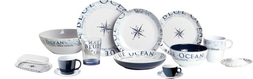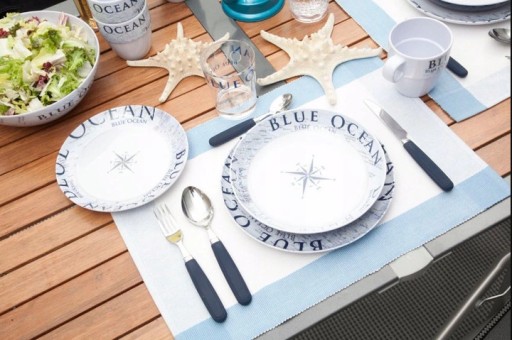 ZESTAW OBIADOWY WYKONANY Z MELAMINY FIRMY BRUNNER SERIA BLUE OCEAN