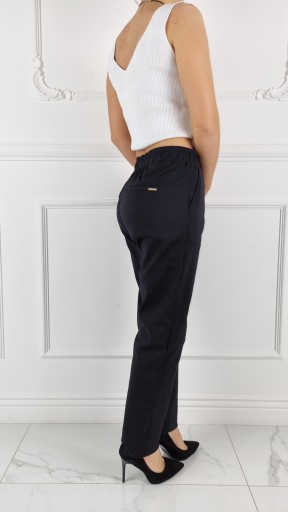 Eleganckie klasyczne spodnie cygaretki 7/8, posiadają wysoki stan. Świetne połączeniu ze szpilkami, dzięki swojej uniwersalności, pasują niemal do każdej stylizacji. Elastyczny materiał podkreśla kobiecą sylwetkę. Podkreśl swoje kobiece kształty! Spraw, by Twój codzienny Look był niepowtarzalny.