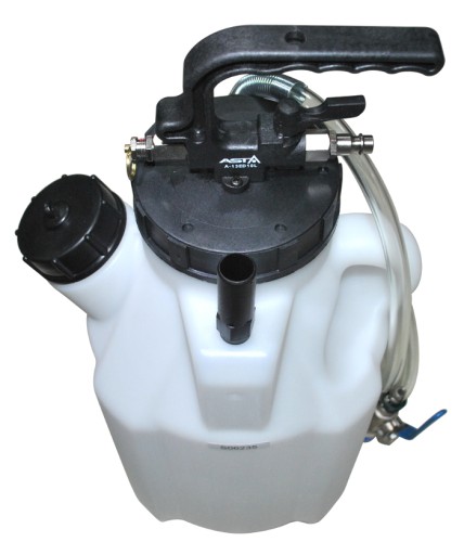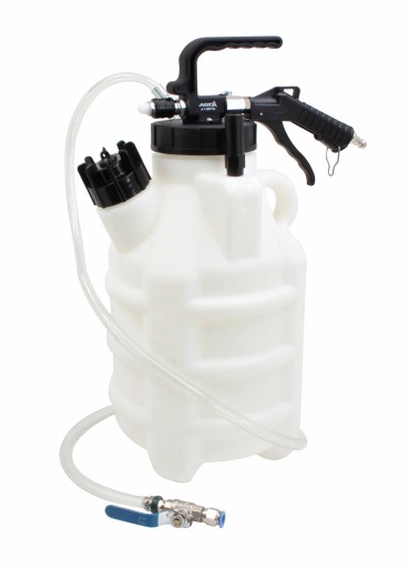 Pneumatyczna pompa ze zbiornikiem 10L przystosowana do napełniania olejem automatycznych skrzyń biegów oraz mechanizmów różnicowych.