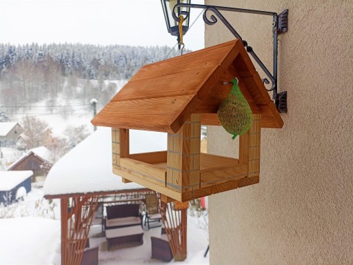 Karmnik świetnie się prezentuje. Ptaszki bardzo chętnie odwiedzają karmnik, nawet jeśli niema śniegu przylatują kolorowe ptaki, dzieci nie można oderwać od okna.