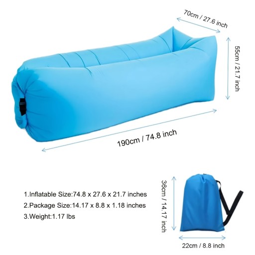 【FOOT PRESS & EASY CARRY】 Jednorazowy śpiwór jest wyposażony w pompkę nożną, wystarczy napełnić powietrzem w ciągu 3-5 minut. Nigdy więcej zamieszania w ustach (pamiętaj, aby założyć wąż) podczas wchodzenia). Zakres rozmiarów to 28cmx12cmx12cm. Można go łatwo umieścić w łatwej do przenoszenia torbie.