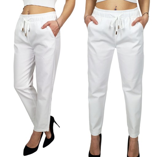 Eleganckie klasyczne spodnie cygaretki 7/8, posiadają wysoki stan. Świetne połączeniu ze szpilkami, dzięki swojej uniwersalności, pasują niemal do każdej stylizacji. Elastyczny materiał podkreśla kobiecą sylwetkę. Podkreśl swoje kobiece kształty! Spraw, by Twój codzienny Look był niepowtarzalny.