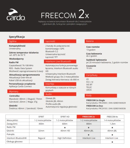 КОМПЛЕКТ ИНТЕРКОМА CARDO FREECOM 2X ОДИНОЧНЫЙ ИНТЕРКОМ