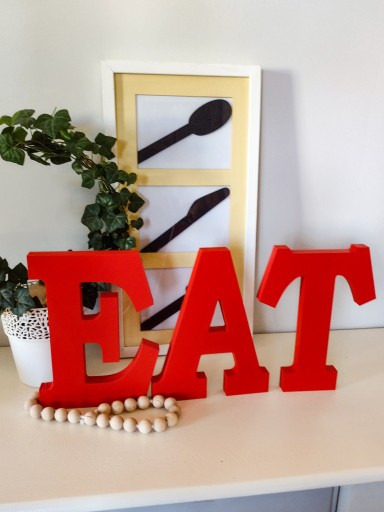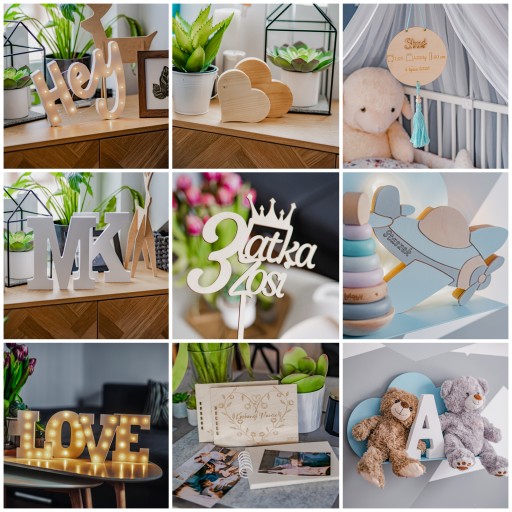Litery wykonane z płyty drewnianej MDF o grubości ok. 23mm, co zapewnia im stabilność w pozycji stojącej. Wysokość liter wynosi 40 cm.