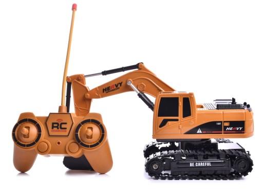 Zdalnie sterowana koparka sterowana pilotem. Pilot umożliwia jazdę do przodu, tyłu, na boki. Ramię koparki wraz z łychą podnoszone są i opuszczane zdalnie, kabina obracane jest ręcznie .